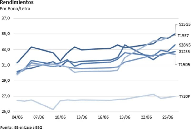 Por último, es también destacable que estamos transitando uno de los momentos del año con mayor demanda estacional de dinero. Los vencimientos de ganancias de personas humanas tiende a ser uno de los factores que impulsa dicha demanda, así como también en el tramo final del mes y comienzos de julio, comienza a incidir el medio aguinaldo y más avanzado julio, los gastos asociados a las vacaciones de invierno. Por lo tanto, entendemos que el actual contexto de falta de pesos podría comenzar a disiparse más avanzado el mes de julio, o incluso agosto, cuando comienza a revertir la demanda estacional de circulante.