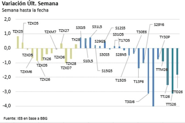 - La curva CER también empezó a mostrar una pendiente negativa, aunque los niveles de tasa real en la parte corta no superan el 13,5%, siendo más atractiva la curva de Lecaps. No obstante, los bonos duales siguen mostrando rendimientos superiores a las Lecaps. Esto los vuelve sumamente atractivos, en especial al TTM26 que tiene la prima a favor (AR$ 11) con respecto al T13F6. Además, han mostrado ser más resilientes, sin fundamentos técnicos, ante esta suba de nivel de la curva.