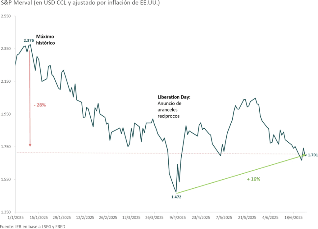 Tras la calma en el conflicto entre Irán e Israel y Estados Unidos, los mercados de equity reaccionaron positivamente. Lo que parecía ser una semana con un tinte rojo dada la reacción del lunes por parte de los mercados internacionales, se convirtió en una rápida recuperación de los valores del equity en los días posteriores. El S&P500 está casi nuevamente en máximos históricos.