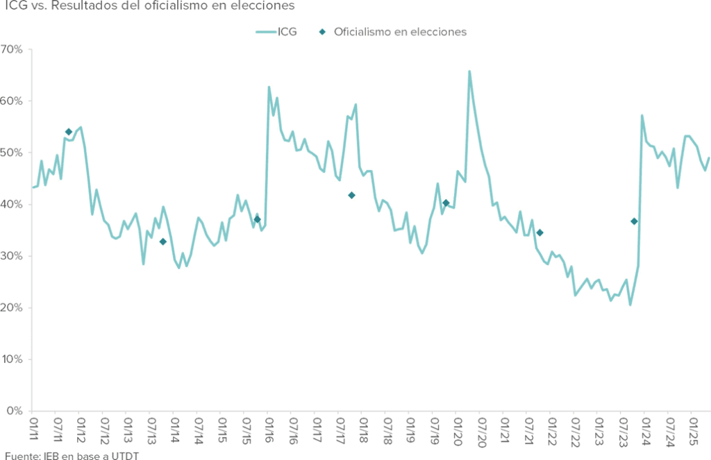 Otra noticia constructiva de la semana, sobre todo en el contexto de la inminente contienda electoral en la Provincia de Buenos Aires, ha sido la publicación del Índice de Confianza en el Gobierno (ICG), elaborado por la UTDT, que además funciona como un buen proxy del caudal de votos del gobierno en las elecciones.